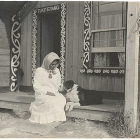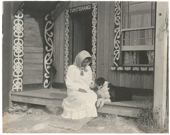 Mākereti [Thom (Papakura)] at Tukiterangi, Whakarewarewa (1907), Harold Hislop. (Alexander Turnbull Library)