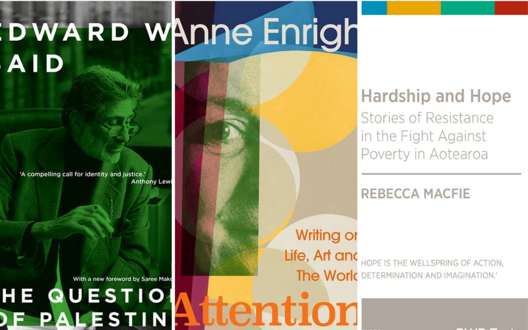 Cynthia Morahan reviews three of her favourite books from last year: Attention by Anne Enright Penguin Random House, Hardship & Hope by Rebecca McFie, published by Bridget Williams Books, and The Question of Palestine by Edward Said, published by Text Publishing.