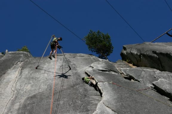 Camera crew on rock face. Photo: Reel Water Productions