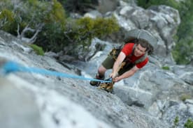 Bryan Smith climbing rock face. Photo: Mikey Schaefer