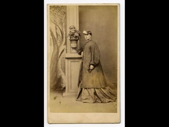 Mary Ann Downes of Port Chalmers had at least seven children. In this photograph, taken around the 1870s, she probably wore the coat to hide her pregnancy. Album 14. © Toitū Otago Settlers Museum