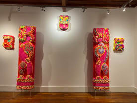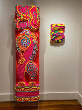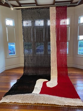 An artistic duo whose creative endeavours include exploring crochet from a Te Ao Māori lens and incorporating sculpture and yarn work to create large scale three-dimensional art installations.