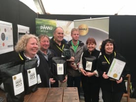 Sharon & Peter McIntyre and their son with Rob Ford, Mandy Armstrong and Claire Hannam from Pamu, Landcorp Farming Limited.