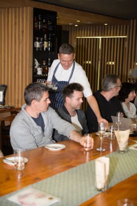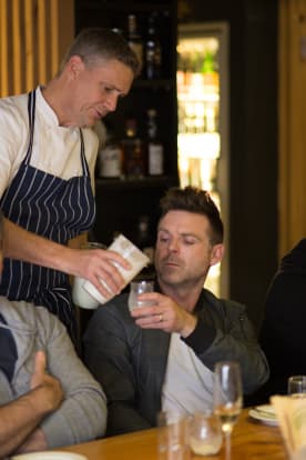 Geoff Scott serving deer milk deserts and yoghurts to a group of Auckland chefs