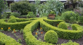 A decorative swirl of buxus hedging keeps the kitchen garden looking not just tidy but fabulous.