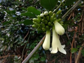 One of the sanctuary's most special plants: a Tecomanthe vine bursting into flower.