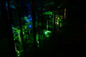 Lanterns 2 -- The forest is illuminated at night with David Trubridge lanterns