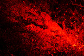 Tut -- Tuatara undisturbed by red light in Zealandia after dark