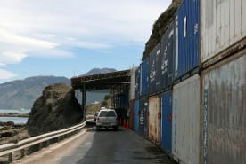 Containers 2 -- Containers hold back slumping hillsides on the road to Kaikoura