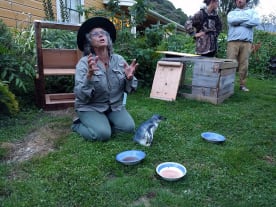Shireen Helps of Pohatu Penguins talks to a group about rehabilitating sick and injured penguins