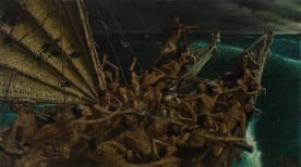 Louis John Steele and Charles F. Goldie, The Arrival of the Maoris in New Zealand, 1898, oil on canvas, Auckland Art Gallery Toi o Tāmaki, gift of the late George and Helen Boyd, 1899, 1899/2/2.