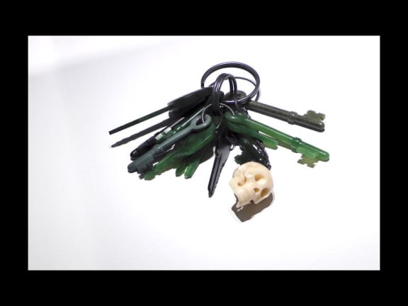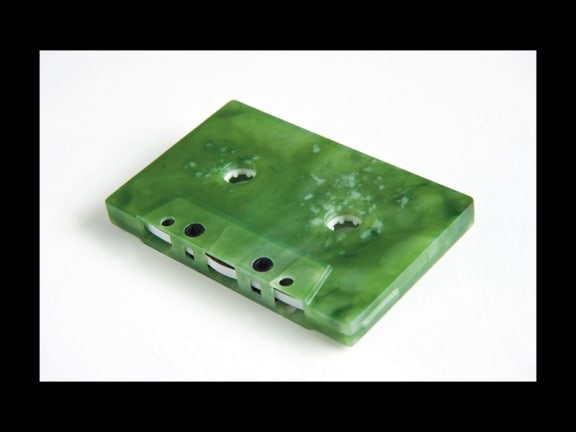 Joe Sheehan, The Song Remains the Same II, 2008. Pounamu (Haast), plastic spools and magentic audio tape. Courtesy of the artist and Tim Melville Gallery.