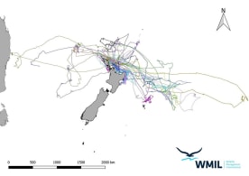Kennedy Warne talks to Kathryn about a night out with the petrelheads, being an evening in the Auckland suburb of Cornwallis, banding grey-faced petrels, and the excellent 2019 breeding season of the threatened black petrels of Great Barrier. The maps show the journey they make on their maiden flight from New Zealand to Chile.