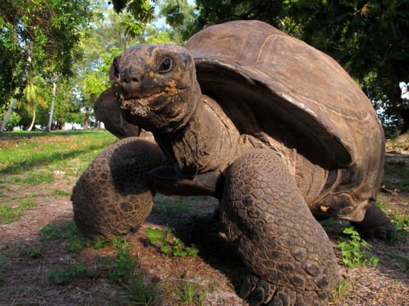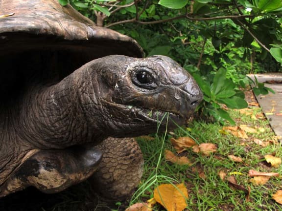 "Petit Four", the largest resident giant tortoise on D'Arros.