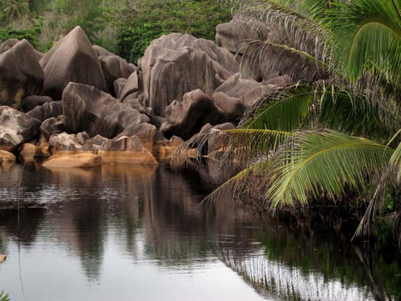 Many Seychelles islands are granitic, and the landscape is peppered with fluted, weathered granite slabs.