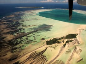 D'Arros Island (in distance) and St Joseph Atoll, in the Amirantes group of the Seychelles.