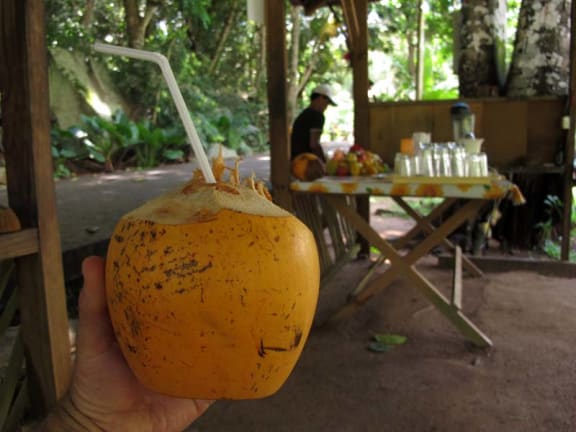 A reddish yellow coconut known as coco rouge grows on La Digue and makes a sweet, refreshing drink.