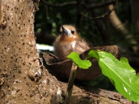 Fairy terns do not make nests. They lay their eggs on tree branches, and the eggs and chicks are prone to falling off. On Cousine the chicks are placed in a small "boat" to make them more secure.