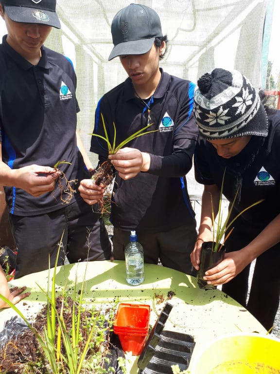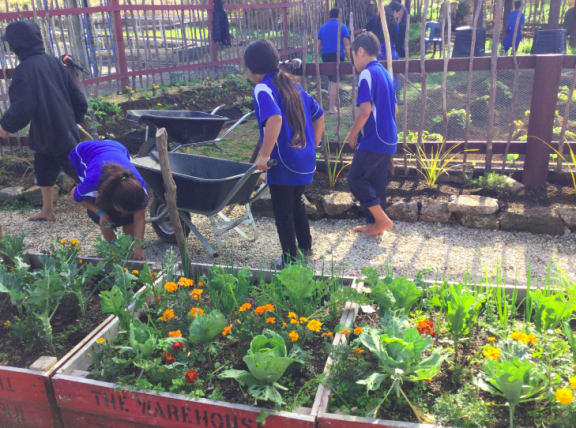 Hands on learning at Te Wharekura o Maniapoto in Te Kuiti where a number of initiatives have been developed for hands on learning, including Pātaka Kai (traditional food storage) and Māra Kai (vegetable garden).