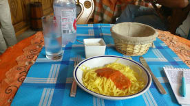 France 2013: a lunch stop at Casteldelfino, and some beautiful home-made pasta with tomato sauce and parmesan.