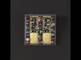 WIENER WERKSTÄTTE, Vienna (manufacturer) Vienna 1903–1932 Eugen PFLAUMER (goldsmith) Austria active c.1908 Brooch (Model no. G 1034) 1908 designed, 1910 manufactured silver, gold, agate, amethyst, bloodstone, coral, jasper, lapis lazuli, moonstone. o