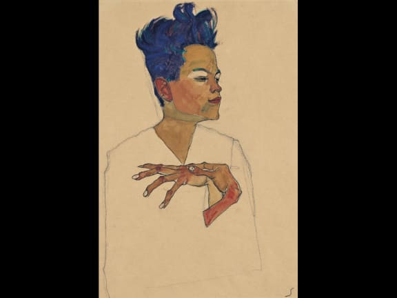 Egon SCHIELE Austria 1890–1918 Self-portrait with hands on chest 1910 charcoal, watercolour and gouache 44.8 x 31.2 cm Kunsthaus Zug, Stiftung Sammlung Kamm EXHI013493 – reference only