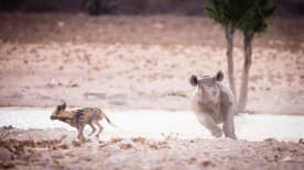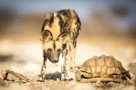 A young lion plays with a pangolin - ® Lance van de Vyver, Wildlife Photographer of the Year.