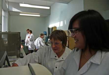 University of Canterbury chemist Alison Downard (centre) and her team, Lita Lee (right) and at the back, from left to right, Paul Robertson, Andrew Gross and Brad Simons (image: V Meduna)