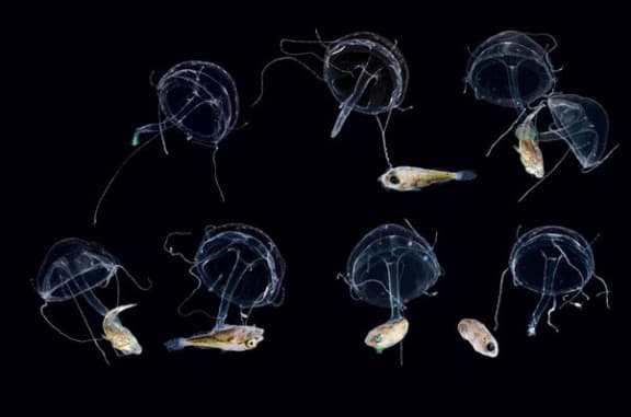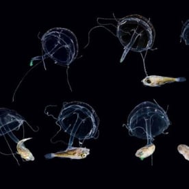 This Liriope medusa caught and ate a large part of a juvenile fish. Christian Sardet, 'Plankton – Wonders of the Drifting World', Univ. Chicago Press 2015