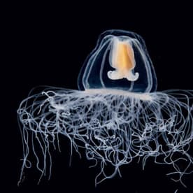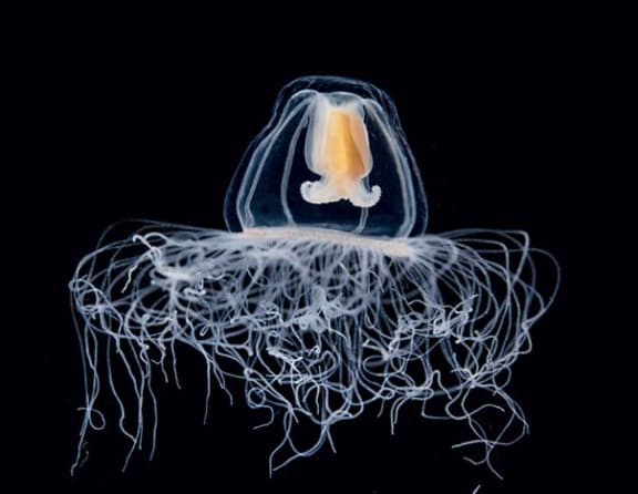 This small medusa collected in the Mediterranean Sea is a close relative of Turritopsis thought to be an immortal jellyfish. Christian Sardet, 'Plankton – Wonders of the Drifting World', Univ. Chicago Press 2015