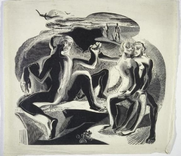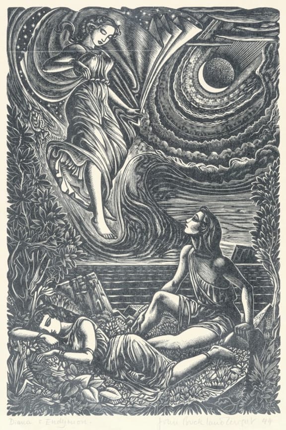 John Buckland Wright, Diana and Endymion, 1944. Wood engraving, purchased 2002. From the exhibition, The Golden Age (18 December 2015 to 1 May 2016).