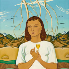 Rita Angus, A Goddess of Mercy, 1945-1947. Oil on canvas, purchased 1956. Reproduced courtesy of the estate of Rita Angus. From the exhibition, In the Vast Emptiness (8 January to 4 June).