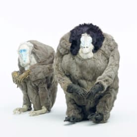 Francis Upritchard, Wife, 2006, and Husband, 2006. Rabbit fur, tanned goat skin, modelling materials, purchased 2008. Courtesy of the artist and Kate MacGarry. From the exhibition, Beasts (18 December 2015 to 30 October 2016)