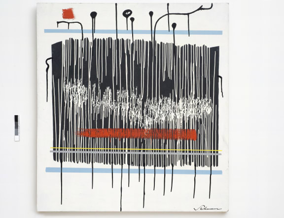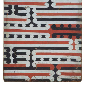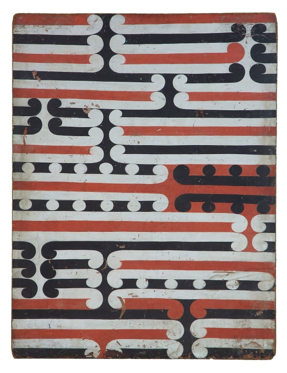 Schoon painted this version of kōwhaiwhai sometime in the late 1950s, when he and Gordon Walters were exchanging ideas and working out how they could make modern art based on Māori designs like the koru. Painting by Theo Schoon. Auckland Art Gallery, 1990/2.