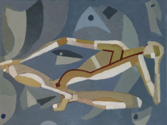 Dancer, circa 1946. Theo Schoon gave this painting to John Money when they first met in Christchurch in 1946. Painting by Theo Schoon. Eastern Southland Gallery, Gore, JMC 02.218.