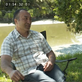 Michel Tuffery trying to locate the site where Sydney Parkinson sketched his landscapes.- Image courtesy of Lala Rolls, Director, Tupaia's Endeavour