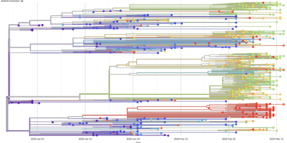 The data helps to build up a 'family tree' of a virus revealing the timeline of where transmissions in a particular country started and came from. The response to the COVID-19 outbreak has seen information about hundreds of samples from 33 different countries being logged and shared in the quest to understand and fight the virus better.