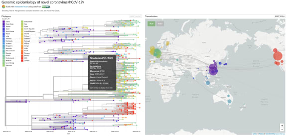 Working from home isn't exactly a new experience for phylogeneticist Dr James Hadfield. Based in Wanaka but employed by Seattle's Bedford Lab, he works on the open source Nextstrain platform: this allows scientists all over the world to share and compare genetic information about SARS CoV-2 and other viruses in one central location, and then track their rate of mutation and their spread in real time.
