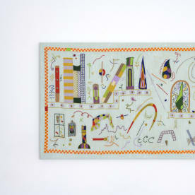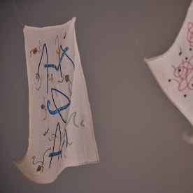 Artist and writer Areez Katki is a rising star in the contemporary arts scene, giving new relevance to embroidery while exploring his Queer and Parsi-Indian identity. He often embroiders into materials handed down through his family, such as handkerchiefs and prayer mats.