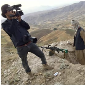 Hossaini filming anti-Taliban force positions in Balkh province, 2021. (PHOTO: Lynne O'Donnell)