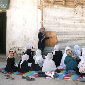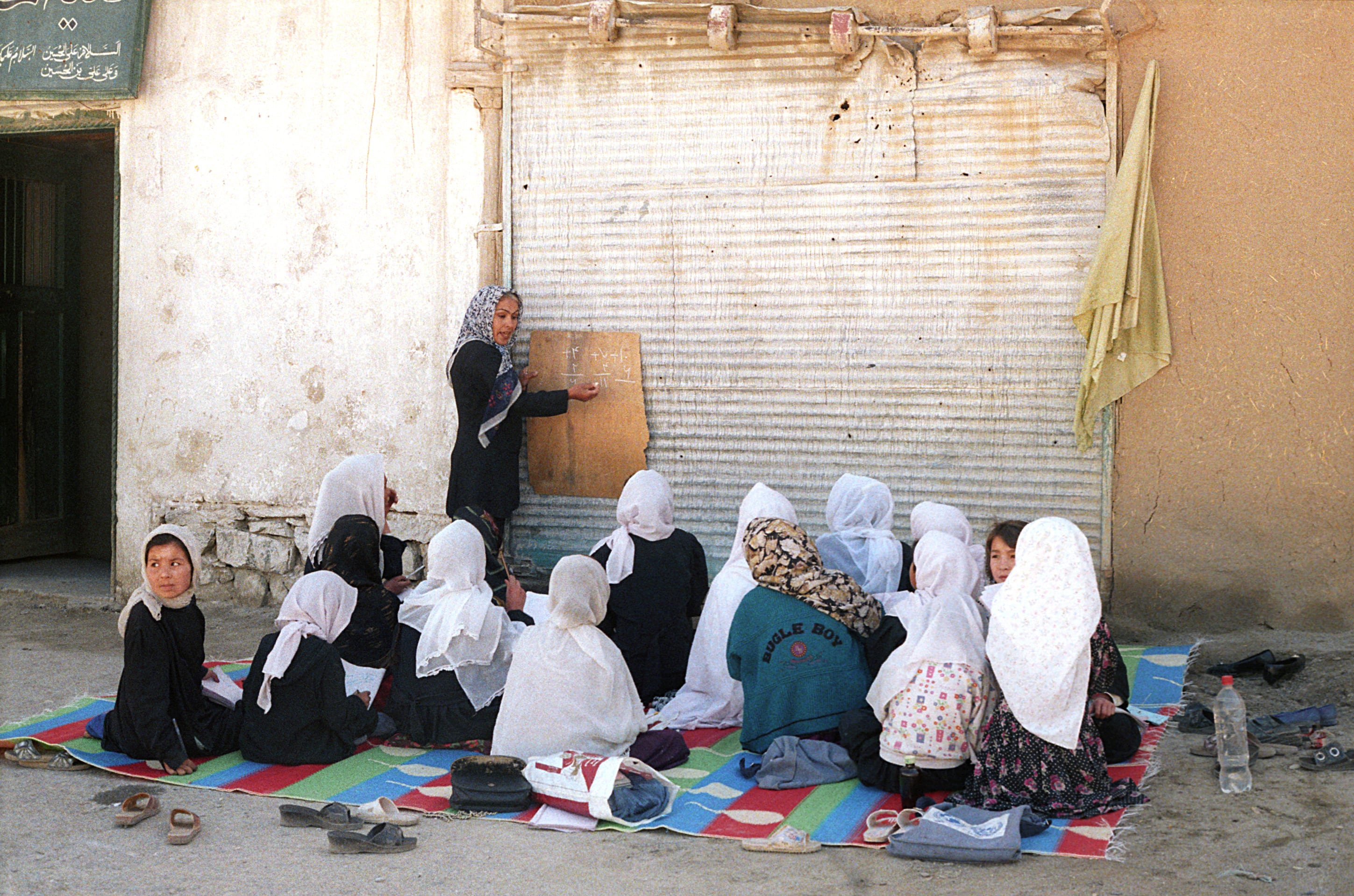 Hazara ethnic girl students at class in Kabul, 2002. (PHOTO: Massoud Hossaini)