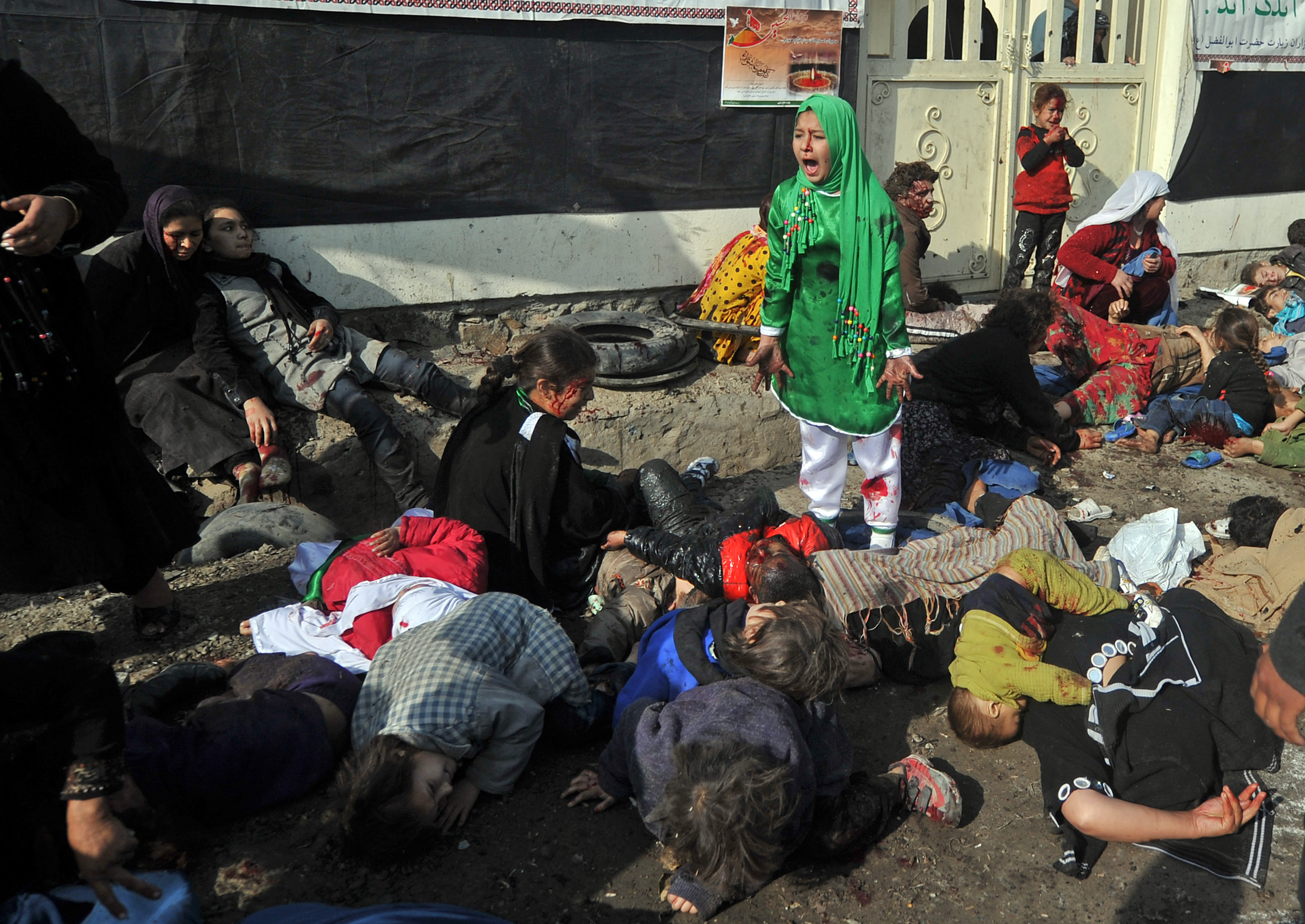 Pulitzer Winning Photo: after explosions during a religious ceremony in Kabul, 2011. (PHOTO: Massoud Hossaini/AFP/GettyImages)
