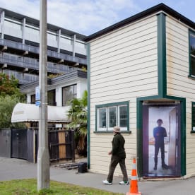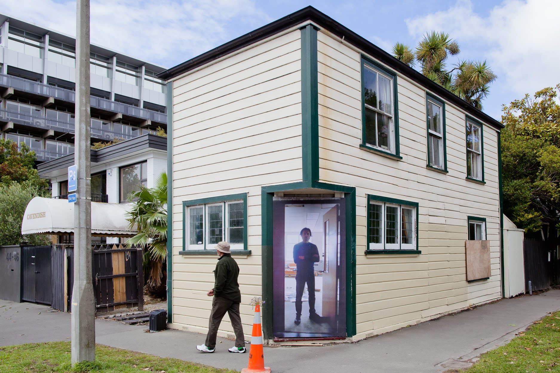 Tony D in the Doorway 2012 - Digital print on exterior of earthquake damaged building