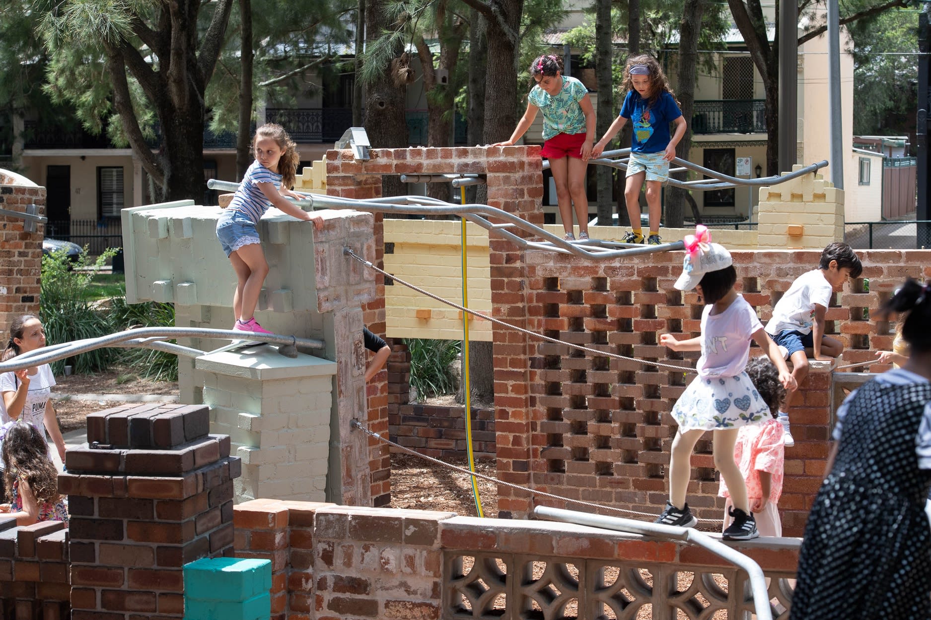 St Peters Fences, Simpson Park, NSW. A permanent public artwork playground comprised of fences based on those from local demolished homes. (PHOTO: Mike Hewson)