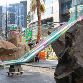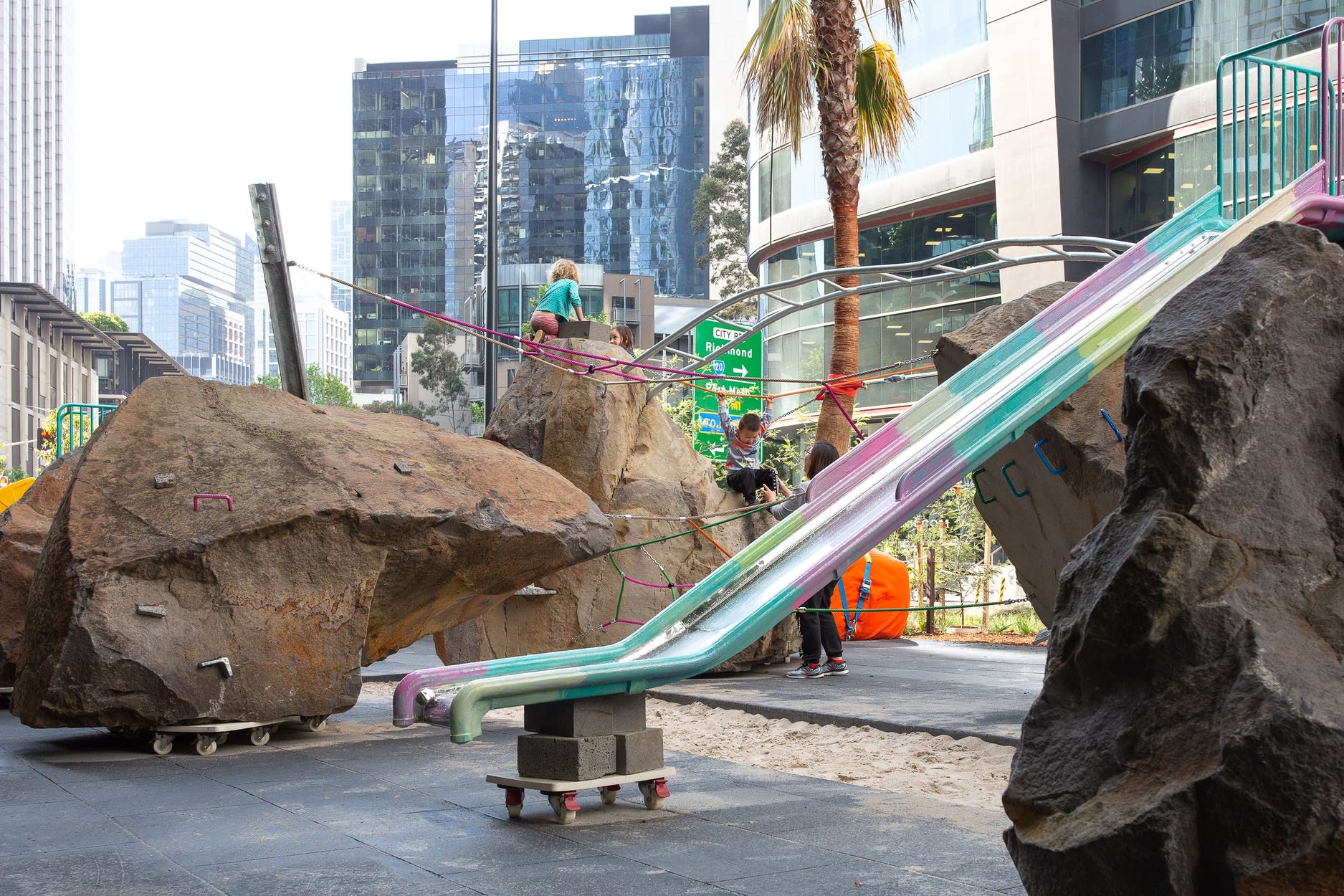 A firm belief that risk and challenge are fundamental to human development has led him to create some extraordinary sculpture park playgrounds, including the recently opened 'Rocks on Wheels' in Melbourne.