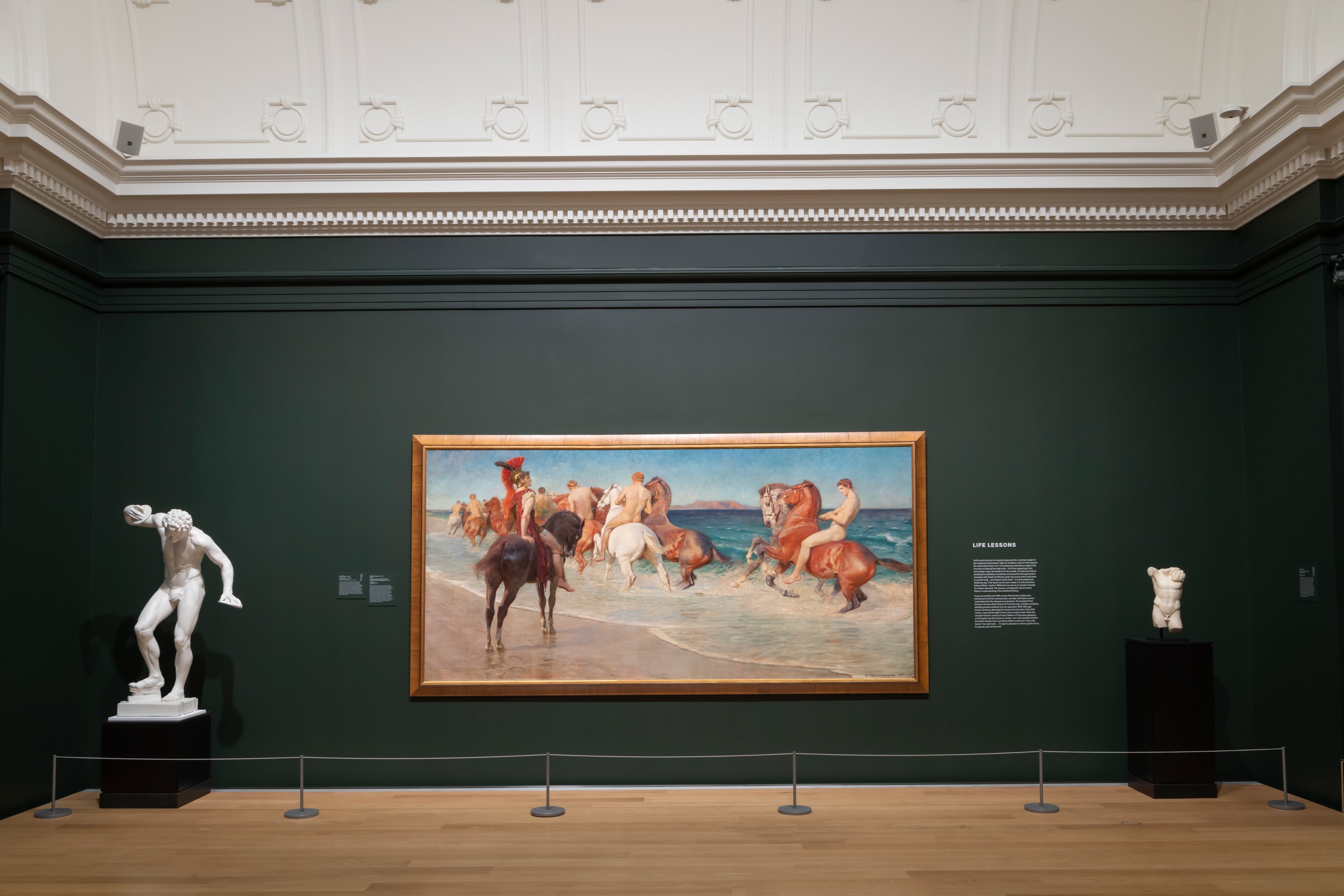 William Calderon 'On the Sea-Beat Coast, where Hardy Thracians Tame the Savage Horse' (1905) Manpower: Myths of Masculinity (installation view), Auckland Art Gallery Toi o Tāmaki, 2022. (PHOTO: supplied)