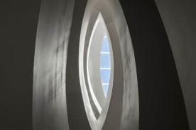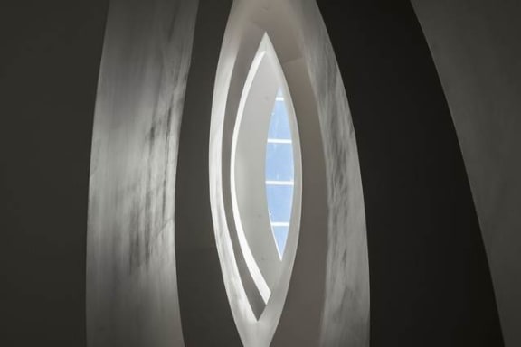 A cut-out on the back wall of Gallery 1 at Te Uru serves as a sculptural form and source of natural light, and indicates the path guests must follow to the upper galleries. Image: Samuel Hartnett, ArchitectureNow