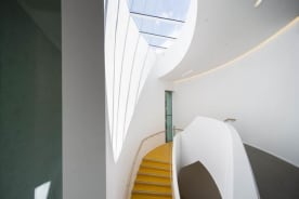 Te Uru’s spiral staircase takes some of its design cues from that of Lopdell House next door. Image: Samuel Hartnett