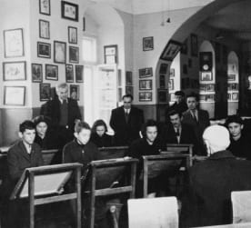 Gabrovo, 1949 Christo (left) during a drawing lesson Photo: Archive © 1949 Christo