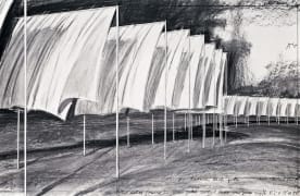 Christo The Thousand Gates (Project) Drawing 1979 Pencil, charcoal, pastel and tape 11 x 14" (28 x 35.5 cm) Photo: Eeva-Inkeri © 1979 Christo